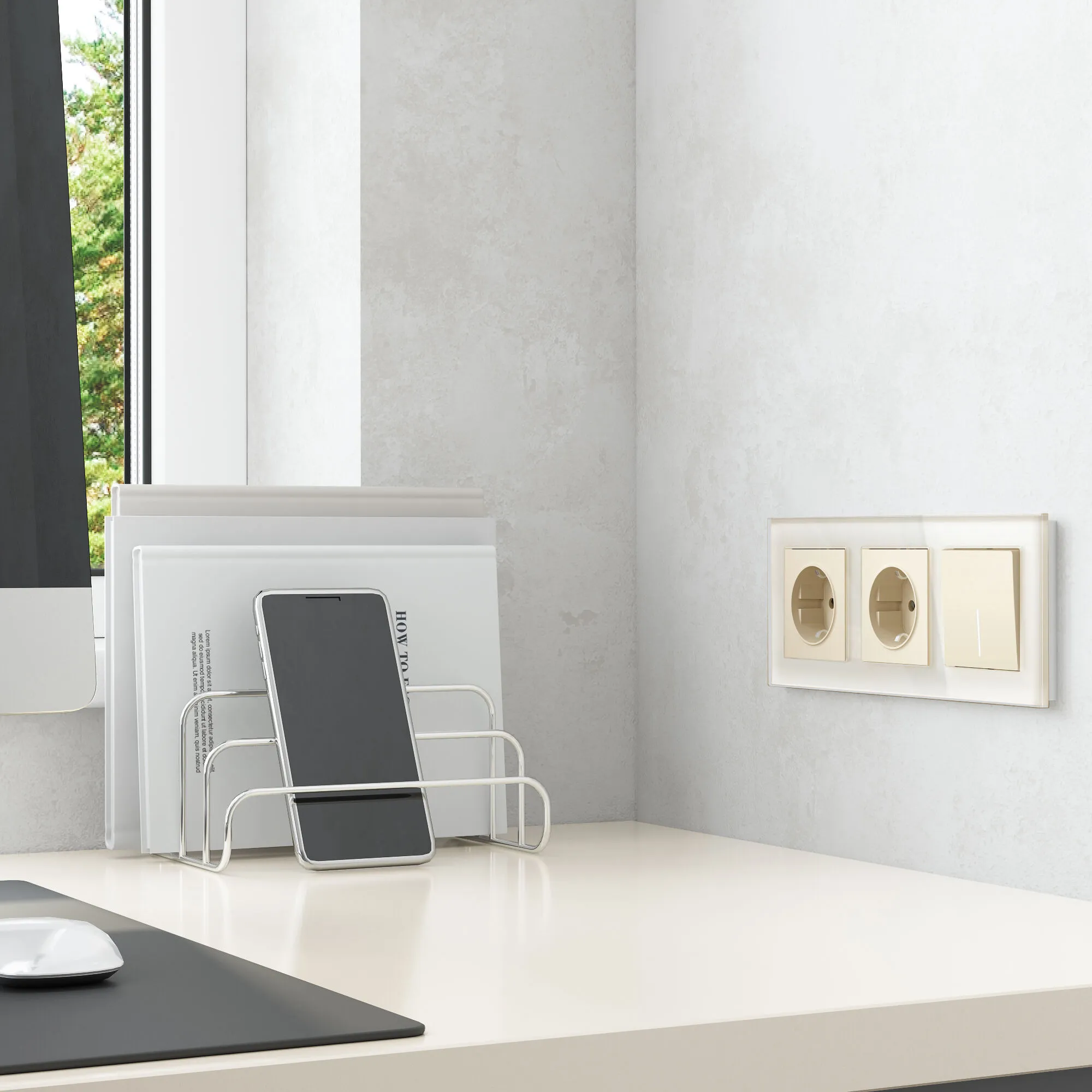 Суппорт из нержавеющей стали позволяет надежно зафиксировать изделие в подрозетнике. Механизм с суппортом из нержавеющей стали устанавливается в стандартную монтажную коробку и надежно фиксируется с помощью винтов и распорных лапок. Декоративные рамки легко устанавливаются и надежно фиксируются на суппорте при помощи клипс Easy Click.
